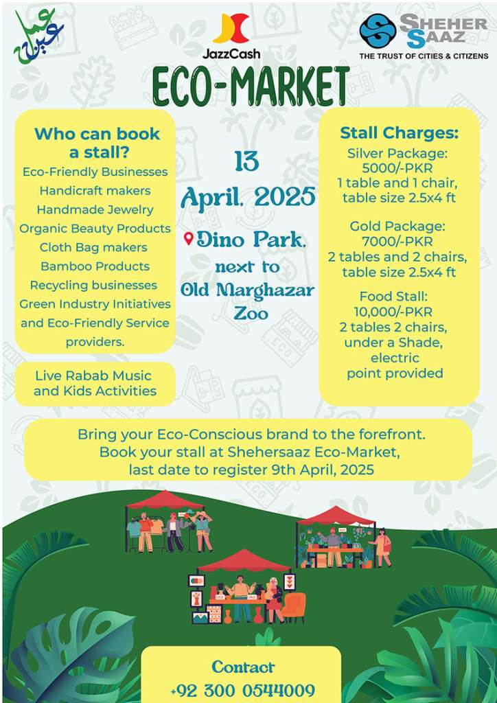Islamabad, April 13, 2025 — The lush green surroundings of Dino Park came alive with color, creativity, and conscious living as Shehersaaz hosted its second Eco-Market, bringing together a vibrant mix of sustainability, community engagement, and cultural celebration. Following the success of its first Eco-Market held in December 2024, this event marked yet another milestone in Shehersaaz’s journey towards promoting environment-friendly lifestyles.