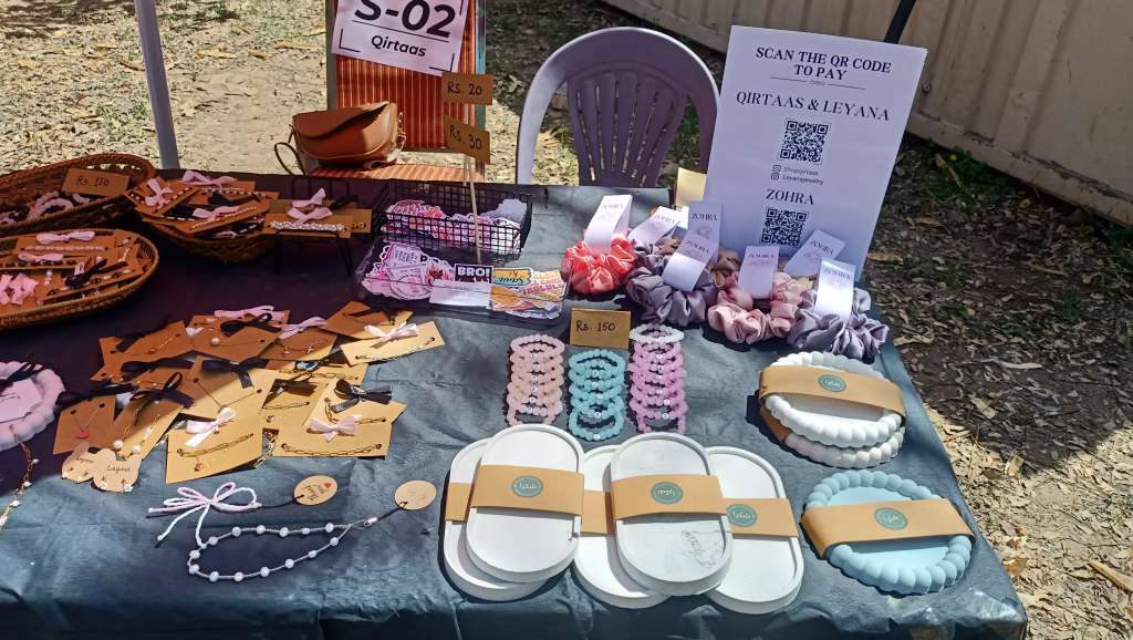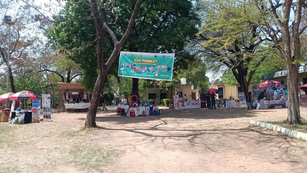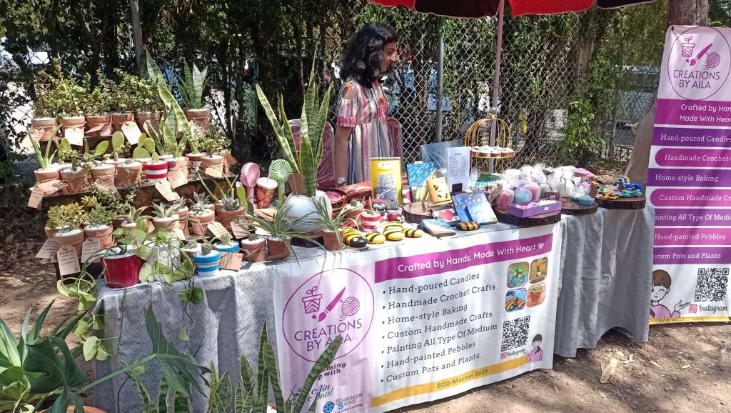 With 27 uniquely curated stalls, the market showcased a range of eco-friendly products and ideas, from handmade jewelry, upcycled décor, sustainable packaging solutions, organic produce, to reusable cloth bags. The star of the show was undoubtedly the Ain-Amal stall, a hand-built bamboo structure that stood out not only for its craftsmanship but also for its message. It featured eco-conscious accessories and cloth bags designed and produced by Shehersaaz as part of their commitment to sustainable urban living.